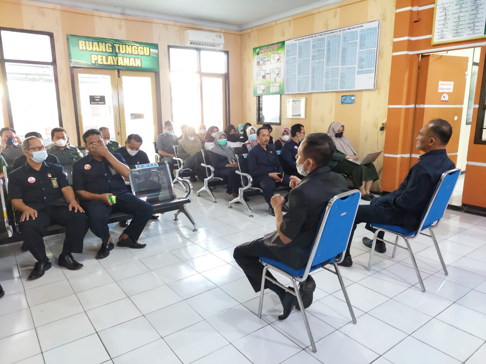 Coffee morning, itulah istilah yang dipakai Ketua Pengadilan Agama (PA) Trenggalek H. A. ZAHRI, S.H., M. HI untuk acara pembinaan yang dilaksanakan pagi ini bersama para Hakim, Pejabat Fungsuonal, Pejabat Kesekretariatan dan seluruh pegawai Pengadilan Agama Trenggalek. Bertempat di ruang Pelayanan Terpadu Satu Pintu (PTSP) acara pembinaan dilaksanakan.