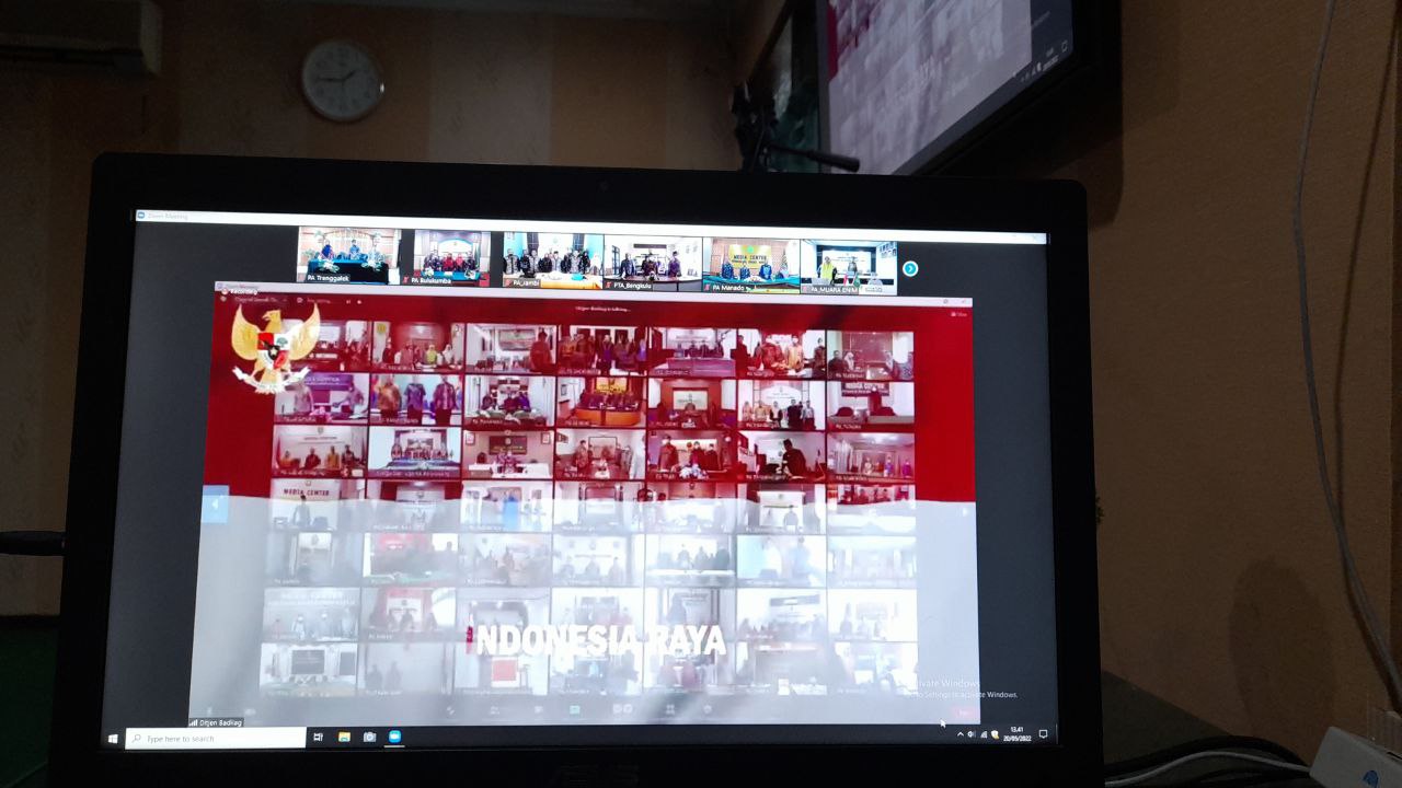 PIMPINAN DAN HAKIM PA TRENGGALEK HADIRI SOSIALISASI EKSAMINASI ELEKTRONIK TAHUN 2022