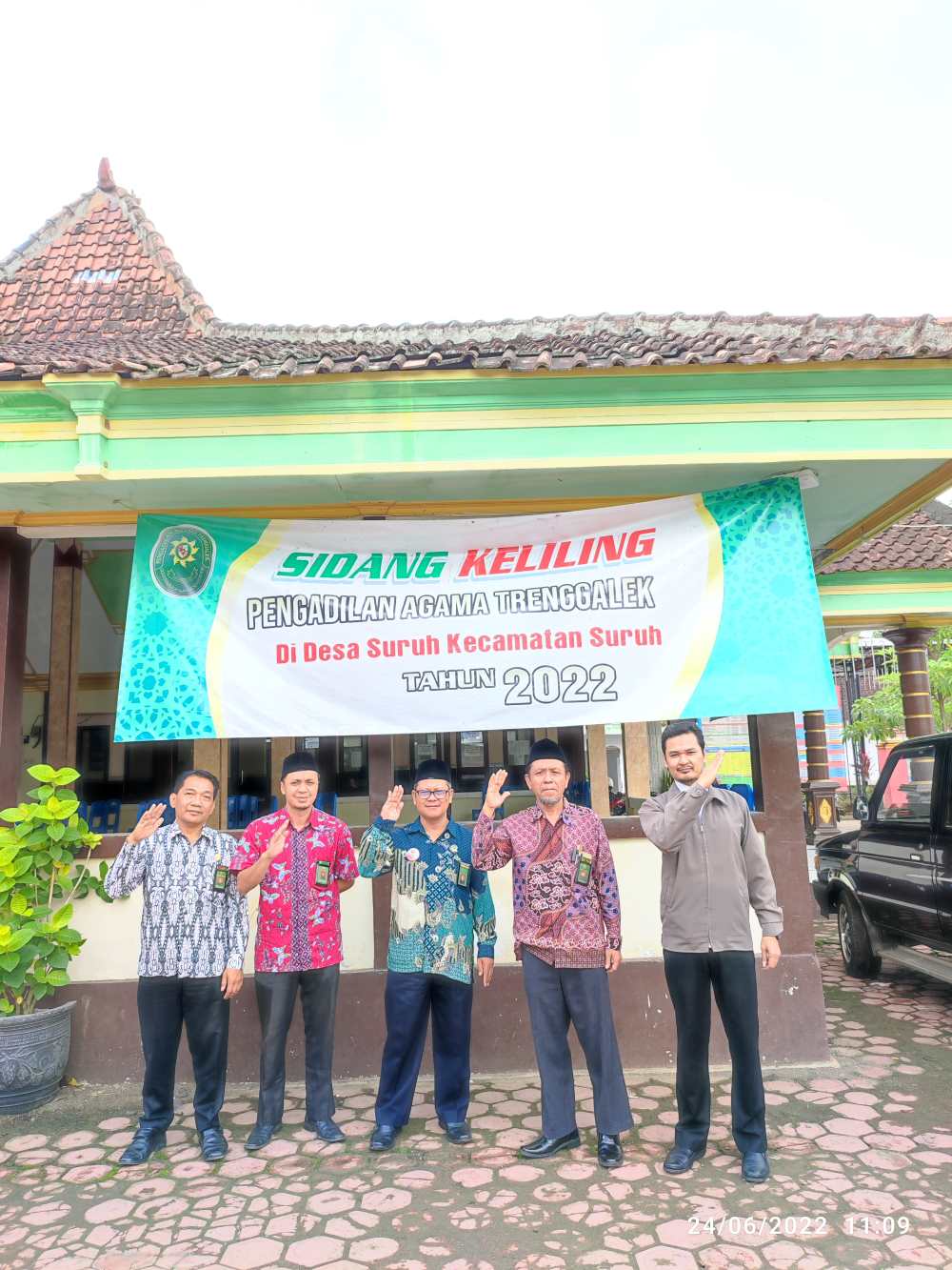 Pengadilan Agama Trenggalek kembali melaksanakan sidang keliling, bertempat di Balai Desa Suruh, Kecamatan Suruh, Kabupaten Trenggalek yang dilaksanakan hari Jumat, 24 Juni 2022. Sesuai dengan jadwal yang telah ditetapkan berdasarkan Surat Keputusan Ketua Pengadilan Agama Trenggalek Nomor : W.13-A21/1295/HK.00.8/SK/1/2022 tanggal 26 April 2022, Tim pertama yang melaksanakan tugas menghadapi pelayanan pencari keadilan diselenggarakan oleh Majelis dengan Tim Sidang Keliling yang bertugas adalah bapak Ketua Pengadilan Agama Trenggalek sendiri yaitu bapak H. A. ZAHRI, S.H., M.H.I. sebagai Ketua Majelis Hakim, Drs. H, Suyadi, M.H.I., dan Ahmad Surya Adi, S.H.I. sebagai Hakim Aggota, dibantu oleh Jimmy Jannatino, S.H.I. sebagai Panitera Pengganti, sedangkan Ahmad Mu’arif Zen, S.H. sebagai Operator/JSP, Ichlasul Amal, S.H.I., M.H. sebagai Sopir. Sidang hari ini menyidangkan enam perkara yang terdiri dari dua perkara Cerai Gugat, empat perkara permohonan Dispensasi Kawin.