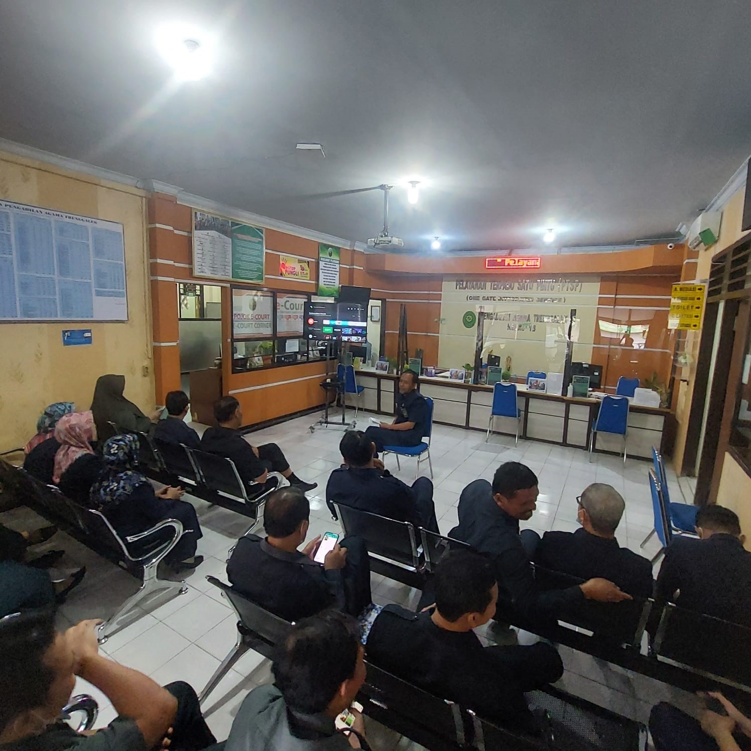 Bertempat di Ruang Pelayanan Terpadu Satu Pintu (PTSP), Selasa 2 Agustus 2022 Pengadilan Agama Trenggalek Kelas I A melaksanakan kegiatan rutin Coffee Morning diikuti seluruh pegawai baik Pejawab Fungsional maupun pejabat Stuktural yang dipimpin Ketua Pengadilan Agama Trenggalek (H. A. ZAHRI, S.H., M.H.I). Dalam kegiatan ini dibahas beberapa hal terkait persiapan penilaian Zona Integritas (ZI) menuju Wilayah Bebas dari Korupsi (WBK) oleh Tim Penilai Nasional (TPN). Ketua Pengadilan Agama Trenggalek menghimbau serta menekankan agar setiap Ketua Koordinator Area ZI memahamai dan dapat mempresentasikannya Area masing-masing sebelum (Before) dan After (sesudah) adanya pencanangan dan pembangunan Zona Integritas menuju WBK/WBBM.