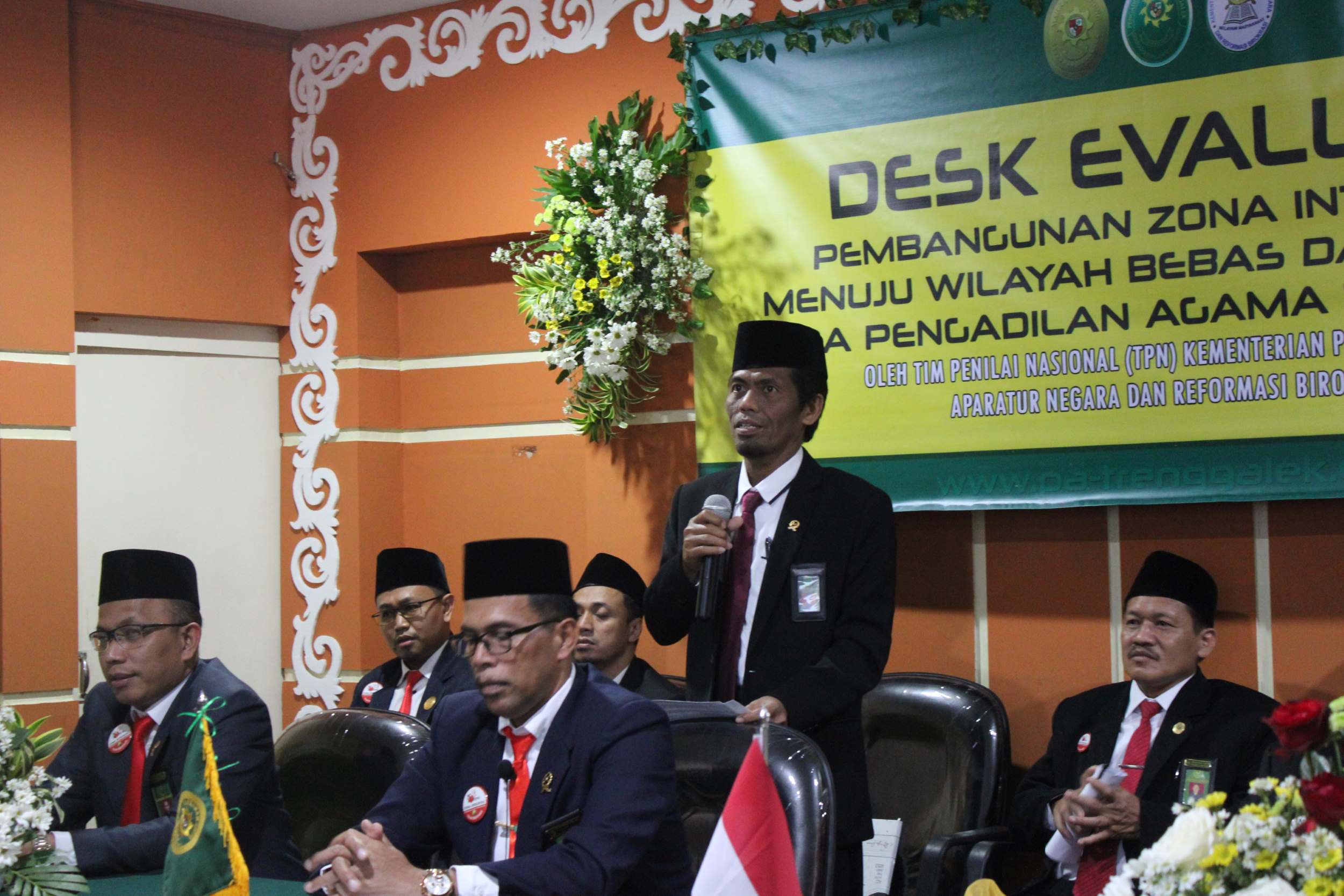 Tim Kemenpan RB mempersilahkan kepada Ketua Pengadilan Agama Trenggalek Drs. Samsul Amri, S.H., M.H. untuk menyampaikan Presentasi dan pemaparan tentang Zona Integritas pada Pengadilan Agama Trenggalek. Sebelum menyampaikan Pemaparan beliau memperkenalkan Tim ZI Pengadilan Agama Trenggalek terlebih dahulu terdiri dari Wakil Ketua selaku Ketua TIM ZI, Panitera dan Sekretaris selaku Koordinator Teknis dan Operasioanl serta Para Koordinator Area serta Agen Perubahan.
