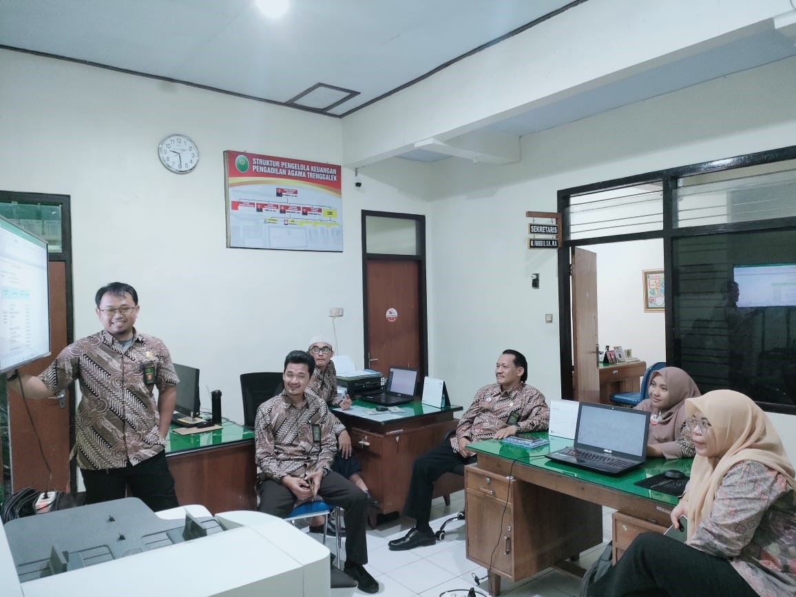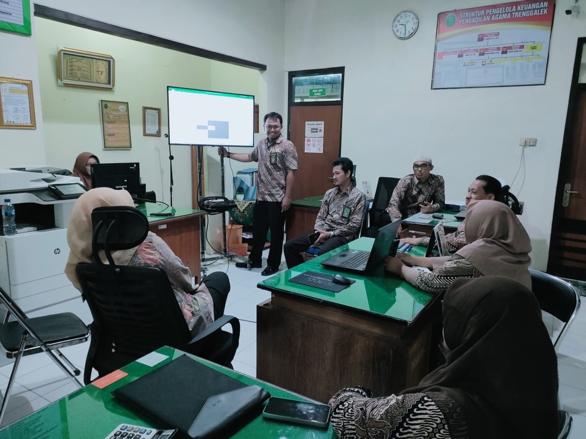 Kamis, 1 Desember 2022 Bertempat di Ruang Kesekretariatan Pengadilan Agama Trenggalek dilaksanakan Sosialisasi hasil kegiatan Bimbingan Teknis Manajemen Kesekretariatan yang dilaksanakan oleh Pengadilan Tinggi Agama Surabaya mulai tanggal 28 s.d 30 Desember 2022 di Aston Sidoarjo City Hotel & Conference Center Sidoarjo Jawa Timur. Kegiatan Bimtek Manajemen diikuti Sekretaris, Kepala Sub Bagian Umum dan Keuangan dan Kepala Sub Bagian Organisasi Tata Laksana sewilayah Hukum Pengadilan Agama Surabaya. Materi Kegiatan Bimtek mencakup penyusunan SKP, dan Pengendalian Intern Pelaporan Keuangan (PIPK).