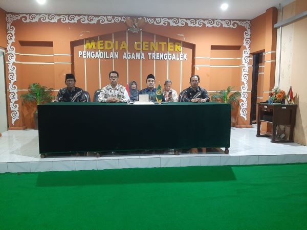 Trenggalek 6 Juli 2023, Pengadilan Agama Trenggalek mengikuti kegiatan pembinaan bidang teknis dan administrasi Yudisial secara secara daring melalui aplikasi zoom meeting, berdasarkan surat Wakil Ketua Mahkamah Agung RI Nomor : 18/WK.MA.Y/VI/2023 tanggal 26 Juni 2023. Kegiatan pembinaan dihadiri oleh Ketua, Wakil Ketua, Hakim, Panitera dan Sekretaris dan bertempat di Media Center Pengadilan Agama Trenggalek.