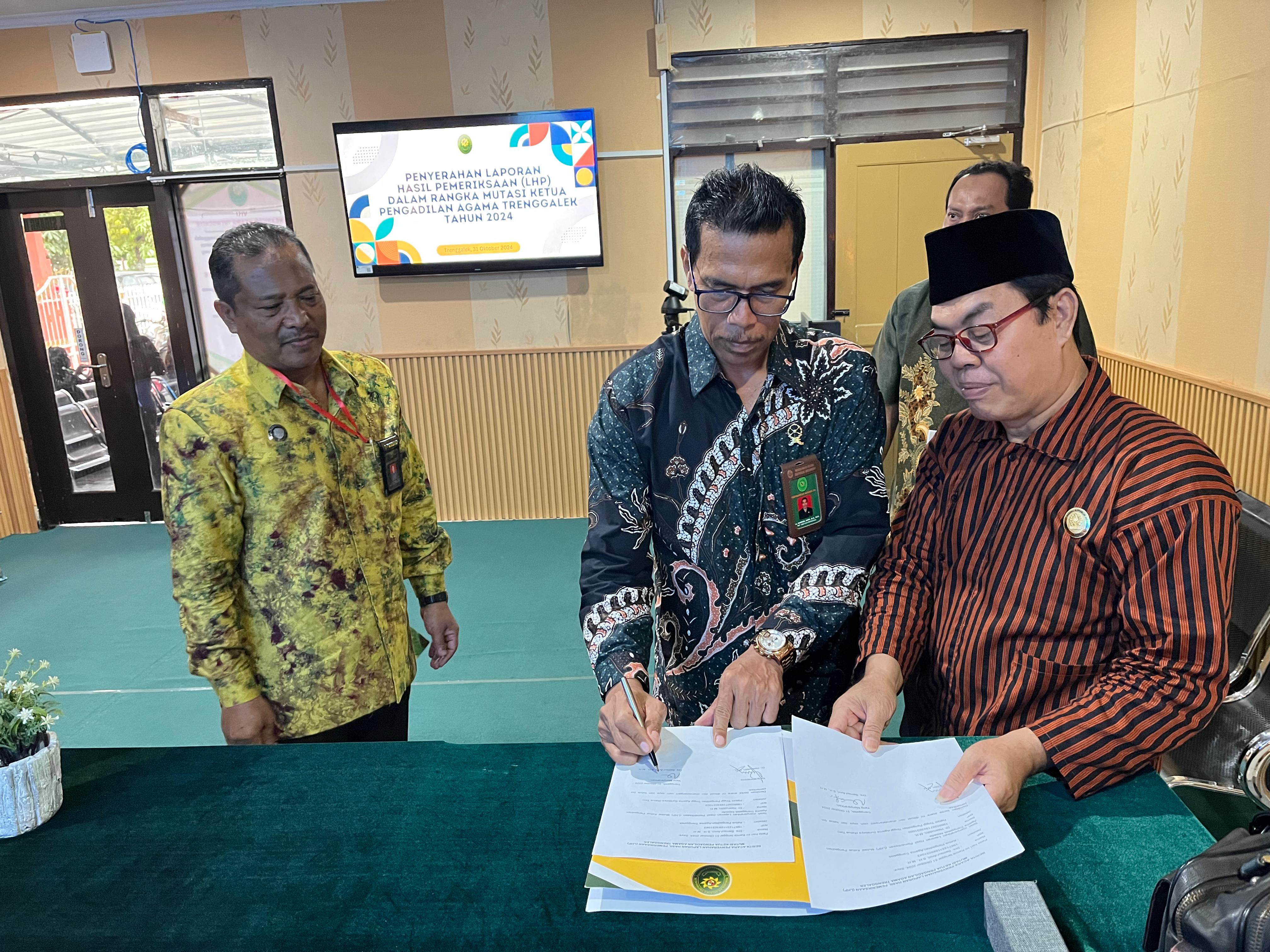 Ketua Pengadilan Trenggalek Drs. SAMSUL AMRI, S.H.,M.H. sesuai Petikan Keputusan Ketua Mahkamah Agung RI Nomor : 215/KMA/SK.KP4.1.3/X/2024 tanggal 10 Oktober 2024 tentang Promosi dan Mutasi Hakim pada Lingkungan Peradilan Agama mendapatkan Promosi dan Mutasi dari Ketua Pengadilan Agama Trenggalek Kelas IA menjadi Ketua Pengadilan Agama Jember Kelas IA. Materi Audit/Pemeriksaan mencakup Keadaan Berkas Perkara, Keuangan Perkara, Keuangan DIPA Pengadilan Agama Trenggalek Tahun Anggaran 2024 serta berkenaan dengan Inventaris Barang Milik Negara (BMN).