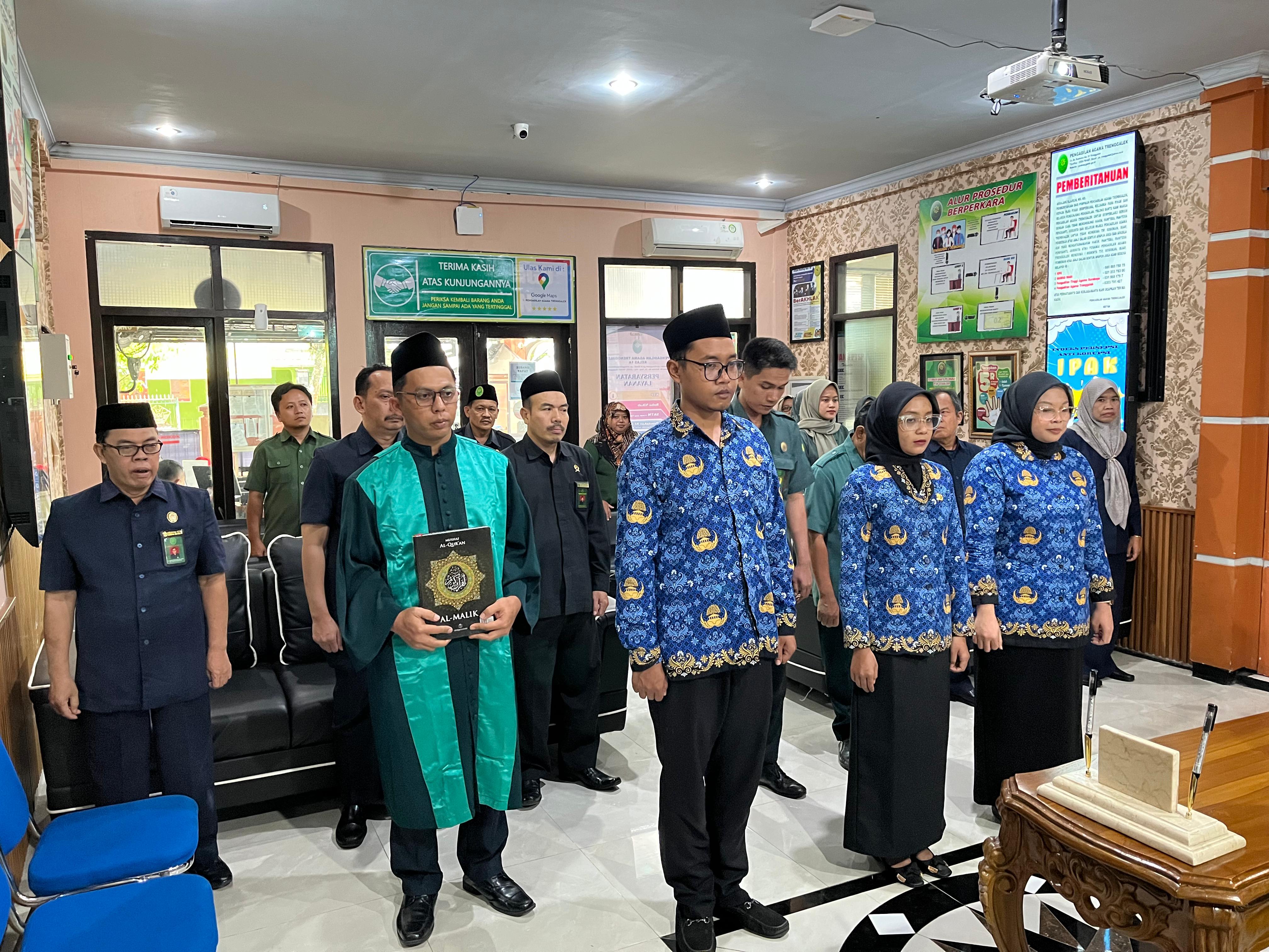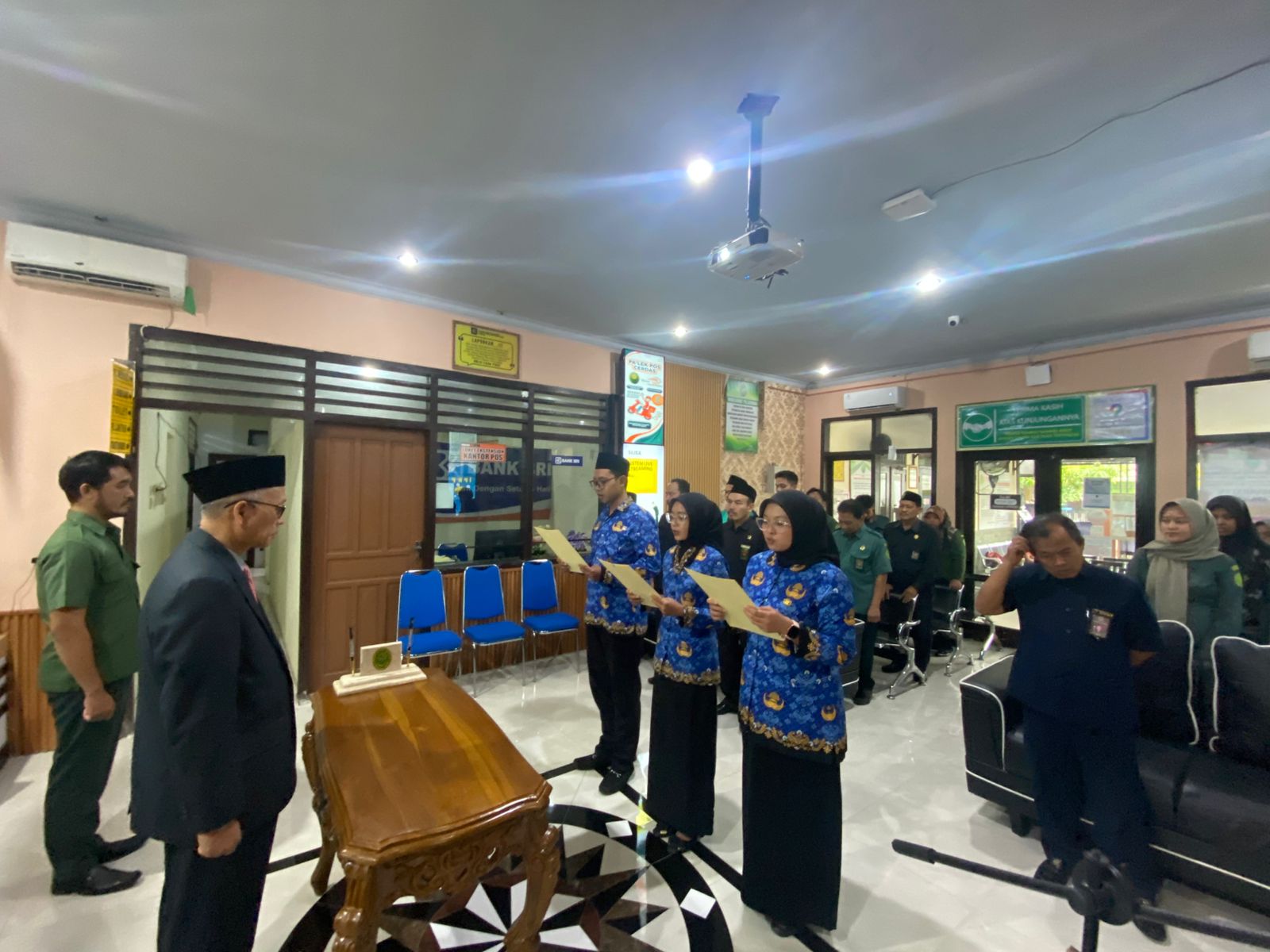 Pelantikan ini juga diikuti oleh seluruh pegawai Pengadilan Agama Trenggalek, yang hadir sebagai bentuk dukungan dan kebersamaan dalam momen penting tersebut. Kehadiran seluruh pegawai turut menambah kekhidmatan acara serta memperkuat semangat kolektif dalam membangun institusi yang bersih dan melayani.