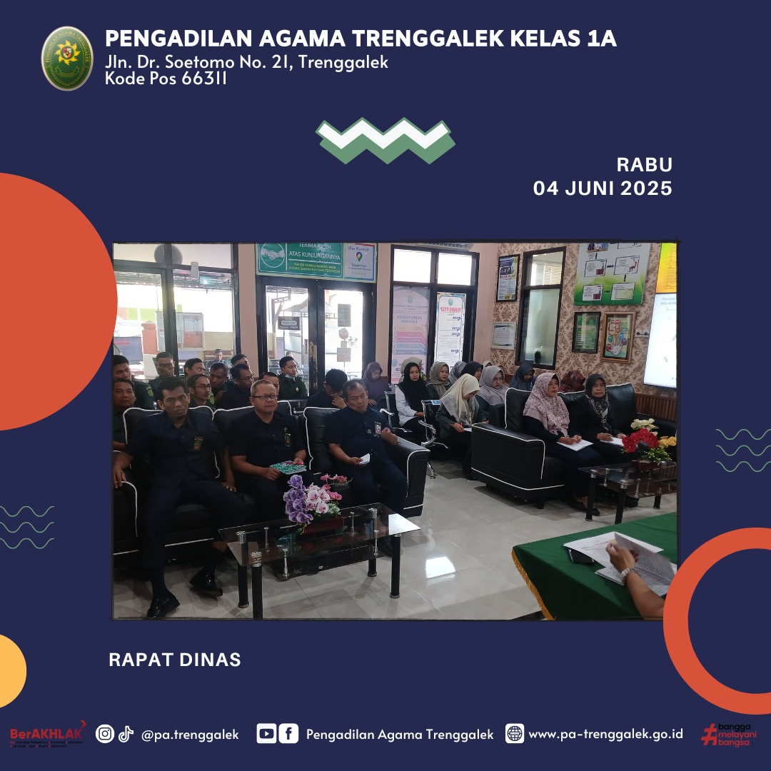 Dengan adanya rapat dinas ini, diharapkan seluruh jajaran Pengadilan Agama Trenggalek semakin solid dan siap menghadapi tantangan serta tugas-tugas ke depan dengan lebih baik.