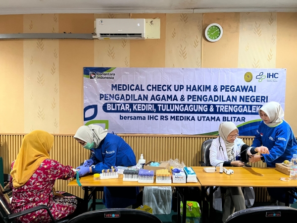 Trenggalek, 21 Agustus 2025, Dalam upaya menjaga kesehatan dan menunjang kinerja aparatur peradilan, Ketua, Wakil Ketua, dan para Hakim Pengadilan Agama Trenggalek menjalani pemeriksaan kesehatan (medical check up) dimulai pukul 07.30 Wib bertempat di ruang Media Center. Kegiatan ini bekerja sama dengan IHC RS Medika Utama Blitar. Medical check up ini bertujuan untuk menjaga kesehatan dan kebugaran para hakim, serta mendeteksi dini potensi penyakit, melalui MCU, diharapkan para hakim dapat menjaga kondisi kesehatan mereka agar dapat menjalankan tugas dengan optimal.